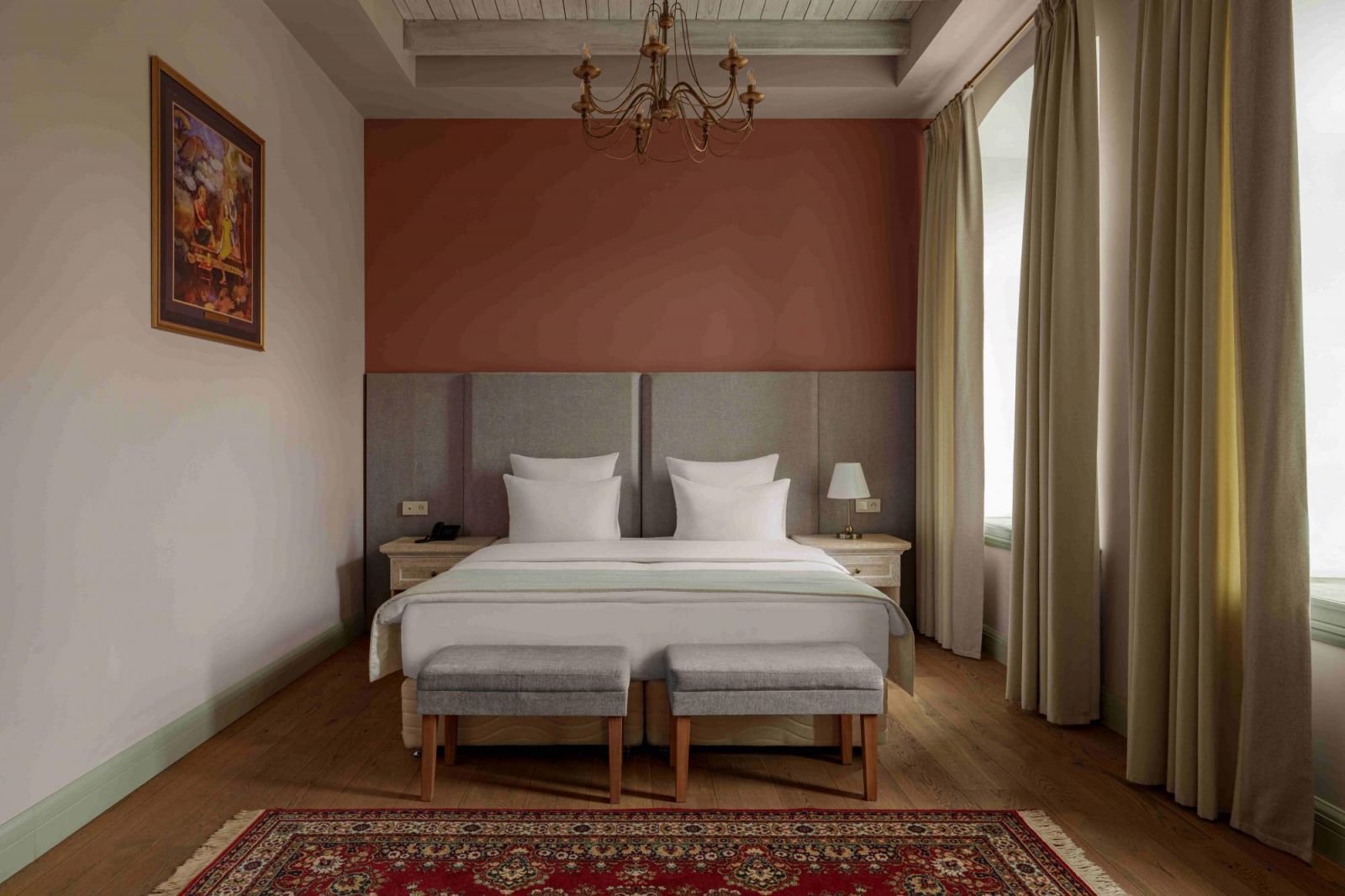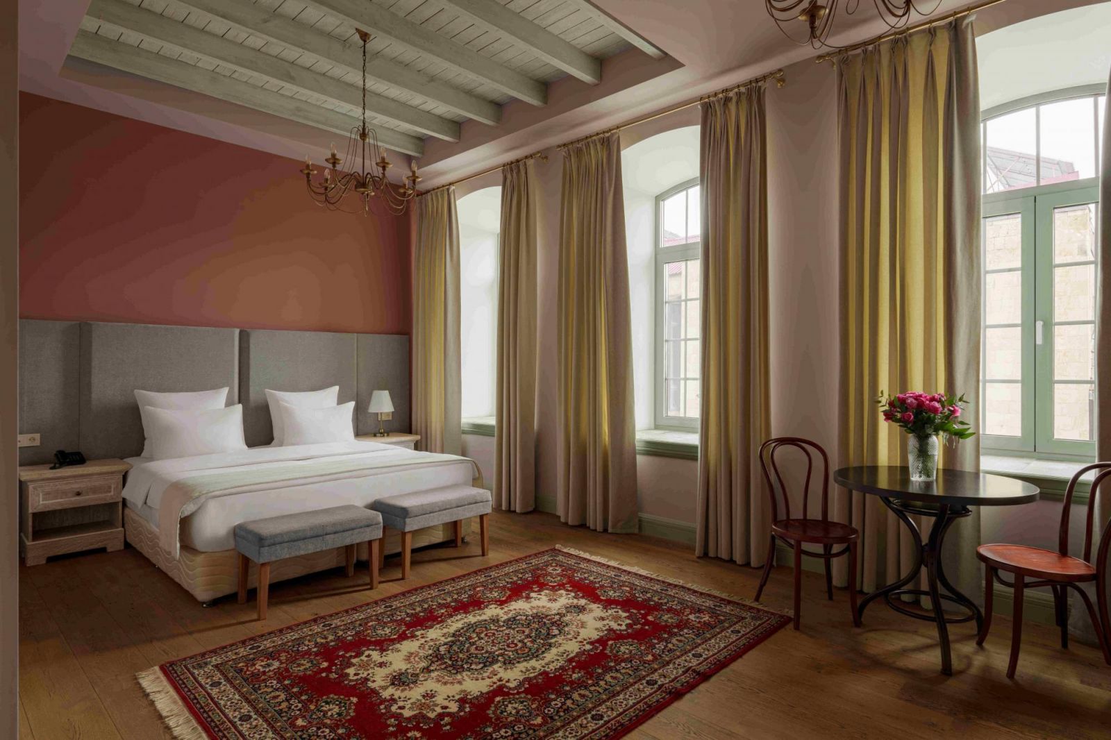 Гостиница Гранд Отель Априкот Гюмри приветствует гостей в сердце культурной столицы Армении, предлагая уникальное сочетание истории, элегантности и современного комфорта. Отель расположен в прекрасно восстановленном здании XIX века, построенном в 1870-х годах и ранее бывшем историческим отеле "Франция", и является частью Историко-культурного заповедника Кумайри, охраняемого государством. Винтажный фасад и утончённый интерьер создают роскошную атмосферу, оставляющую незабываемое впечатление у каждого посетителя.Открытый в 2021 году, отель предлагает стильные, кондиционированные номера с собственными ванными комнатами, видом на город и всеми необходимыми современными удобствами. Гости могут расслабиться на террасе, насладиться напитками в баре или оставаться на связи с бесплатным Wi-Fi на всей территории. Удобства включают комфортабельный лаундж, лифт, круглосуточную стойку регистрации, консьерж-сервис и бесплатную частную парковку. Дополнительные услуги, такие как обслуживание номеров, круглосуточная охрана, живые музыкальные мероприятия и платный трансфер, обеспечивают комфортное пребывание. Каждое утро подается обильный разнообразный шведский стол с горячими блюдами, свежей выпечкой, блинами, сырами, фруктами и соками.